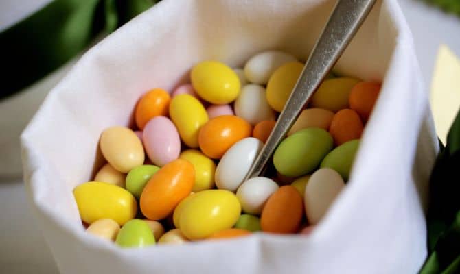 - Sulmona’s Confetti-As well as gold, the Corso’s shops are full of Sulmona’s other great product- confetti-a confection of sugared almonds or chocolate wired into eleborate flowers and other creations with the aid of coloured cellehane,crepe paper and ribbons.They are often given to wedding guests as little token of appreciation.
